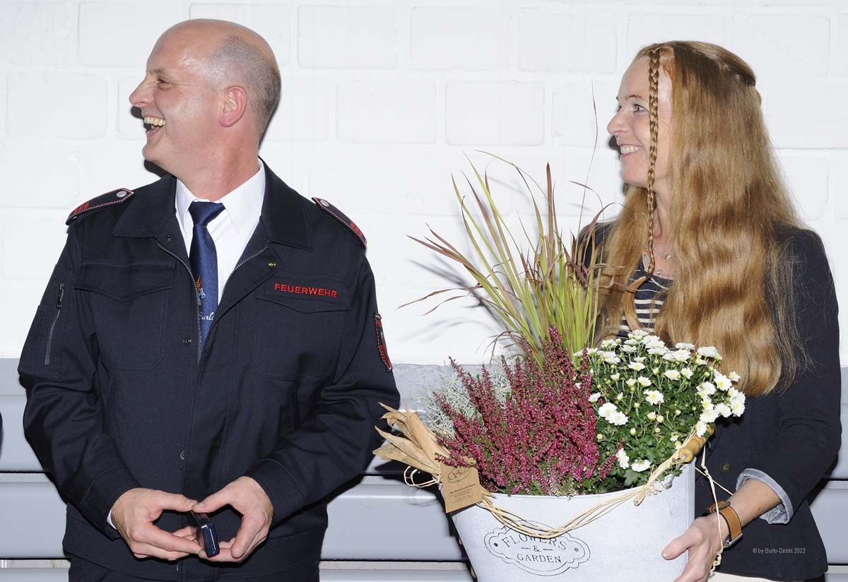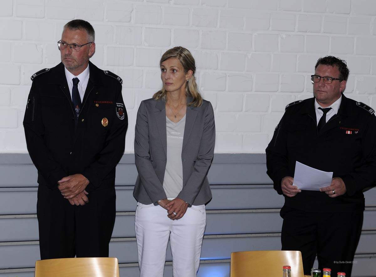 BURLO | Nachdem die letzte Versammlung dieser Art bereits mehr als zwei Jahre zurückliegt, hatte nun die Leitung des Burlo-Borkenwirther Löschzugs zum „Tag der Ehrungen“ (Freitag, 09.09.2022) ins Gerätehaus an der Dunkerstraße eingeladen. Rund 70 Wehrleute mit ihren Partnern und Partnerinnen sowie Vertreter:Innen aus Politik und Verwaltung nahmen an der Veranstaltung teil. Zu den Gratulanten gehörten neben Ortsvorsteherin Maria Schulte auch Norbert Nießing (1. Beigeordneter), Kai Sobbe (stevertr. Wehrleiter) sowie Verena Wischen als Stadt- Jugendfeuerwehr-Wartin.