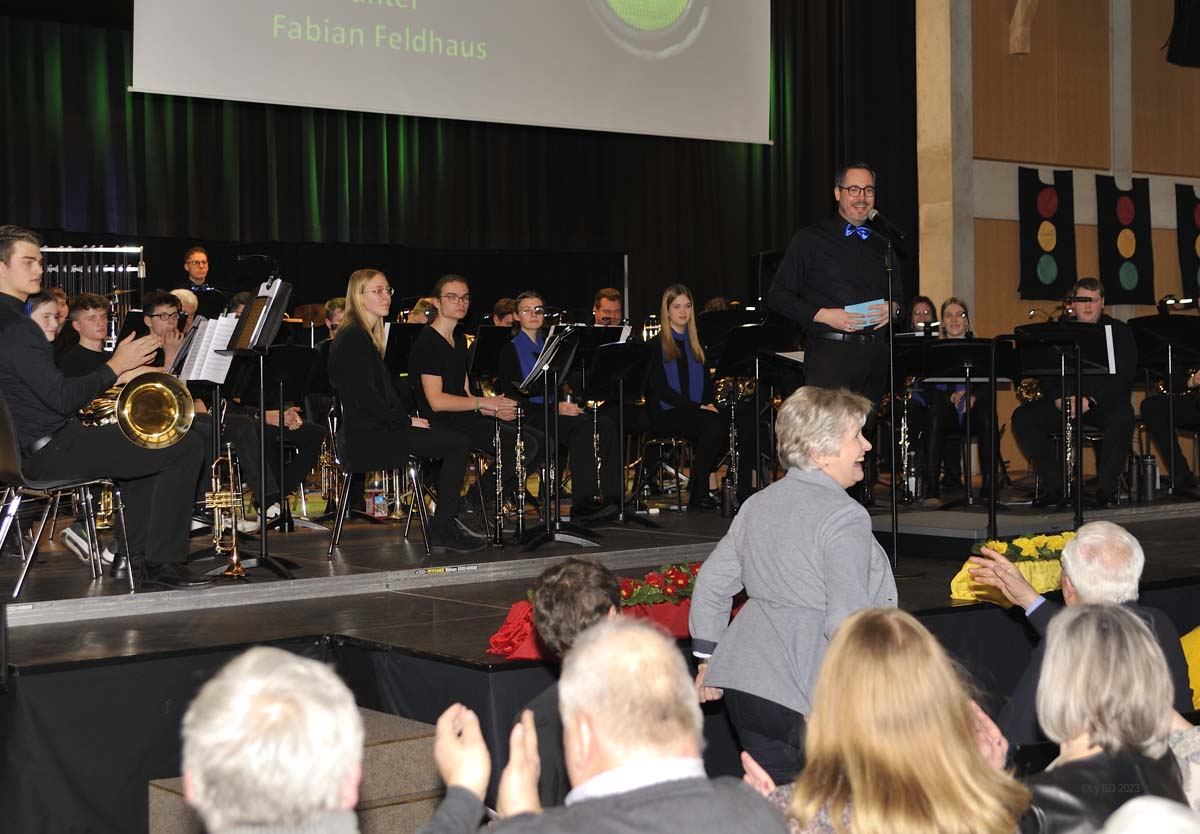 BURLO | bd | Am Samstagabend hatte die Musikkapelle Burlo ins Forum Mariengarden zu ihrem Jahreskonzert geladen, das unter dem Motto „Startup“ stand. Vor ausverkauften Rängen präsentierten sich zunächst die Jugendorchester aus Burlo und des Musikschulvereins Rhede-Spielgemeinschaft auf der Bühne und ließen direkt zum Auftakt der Veranstaltung im Publikum keinen Zweifel aufkommen, dass der Neustart der Blasmusik nach langer Corona-Pause gelingen würde. Unter der Leitung von Fabian Feldhaus startete der musikalische Abend mit Melodien von Andrew Loyd Webber. Für die Darbietungen gab es vom Publikum lang anhaltenden und verdienten Applaus. Die musikalische Leistung der Jugend, aber auch die auf die Musik abgestimmten Video- und Foto-Einspielungen auf der großen Leinwand über der Bühne hinterließen bleibenden Eindruck.