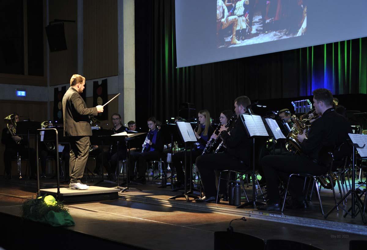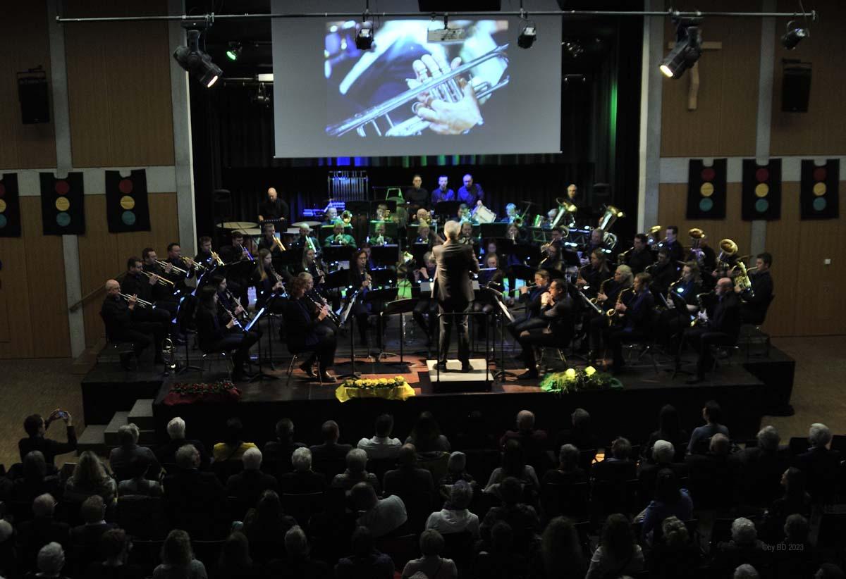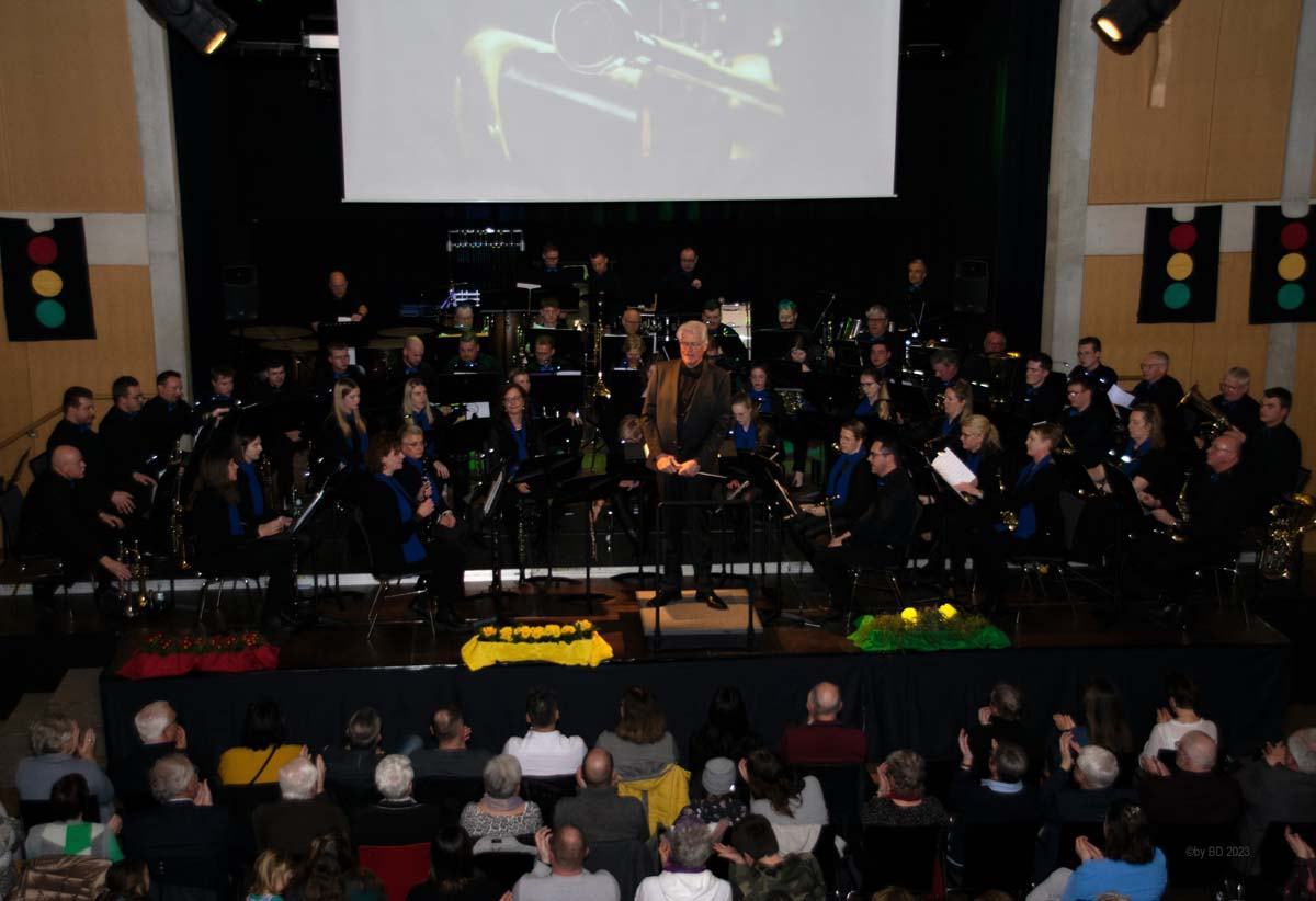 Der musikalische Bogen verlor bis zum Ende des Konzerts nichts von seiner anfänglichen Spannung. Melodien aus der „Star-Treck-Reihe“, Welthits wie „You raise me up“ oder auch die Weinkeller-Polka überzeugten genauso wie eine Auswahl aus dem Repertoire der Phil-Collins-Hits. Das, was ins Publikum transportiert wurde, war die Spielfreude aller Musikerinnen und Musiker, vom Grundschulkind bis hin zum Senior.
