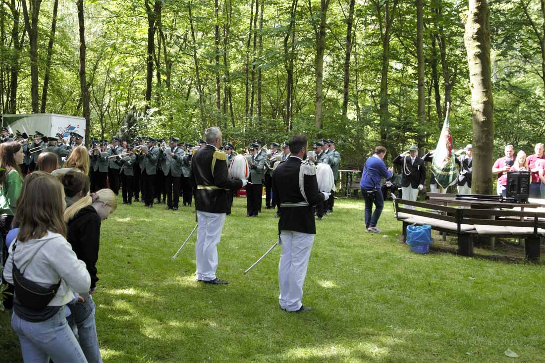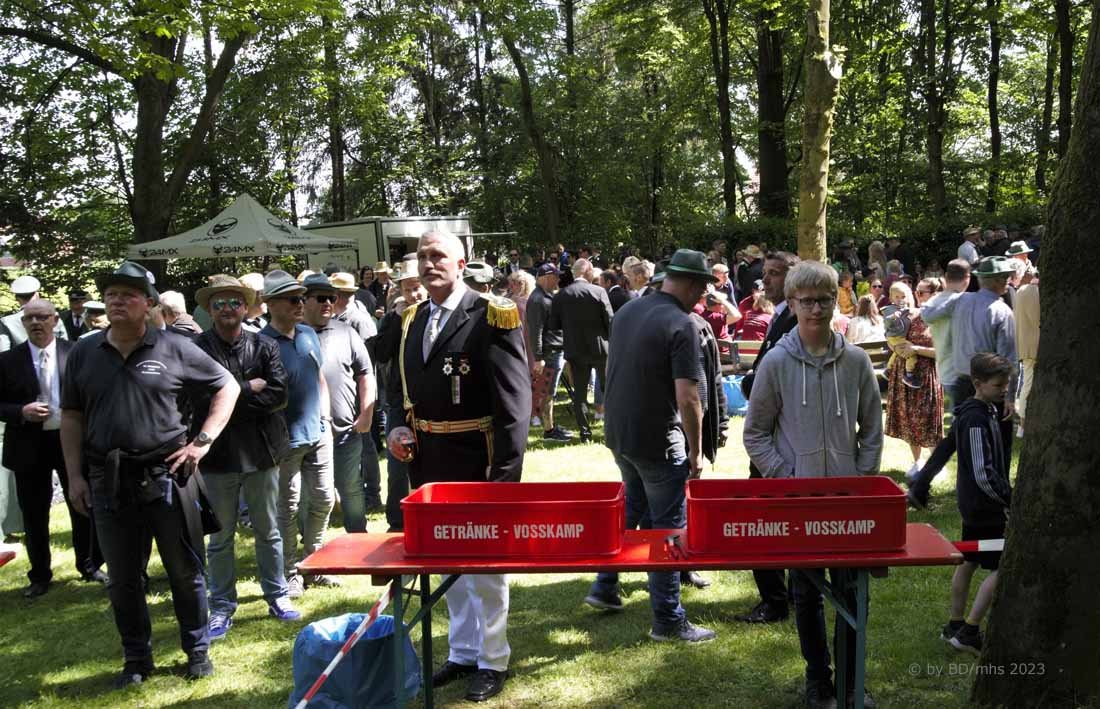 BORKENWIRTHE | bd | Mit einer kleinen zeitlichen Verzögerung wurde das Königsschießen in Borkenwirthe mit Schüssen der amtierenden Majestäten gegen 11:30 Uhr eröffnet. Bei sommerlichem Wetter erwies sich die Schießanlage der Wirther Schützen am Engeland Esch einmal mehr als Schatten spendender und gemütlicher Austragungsort für ein Vogelschießen. Mehrere hundert Besucher hatten dann auch Gelegenheit, den mehr als zwei Stunden andauernden Wettbewerb um die Königswürde zu verfolgen.