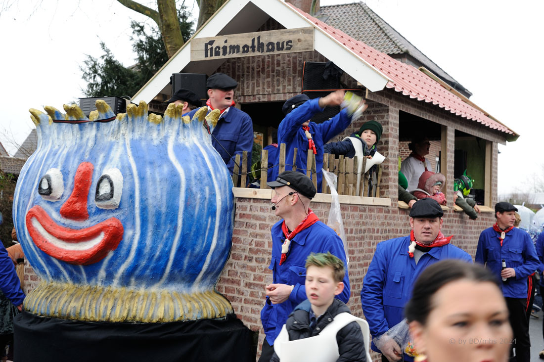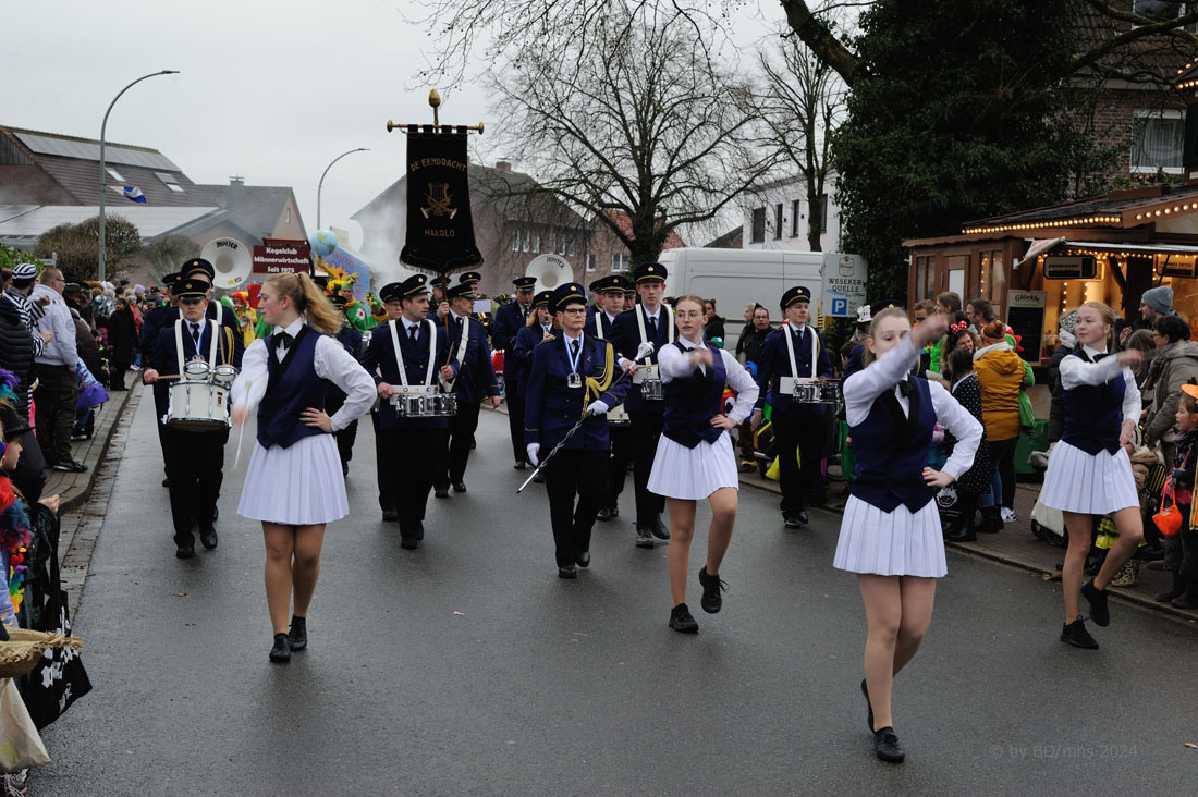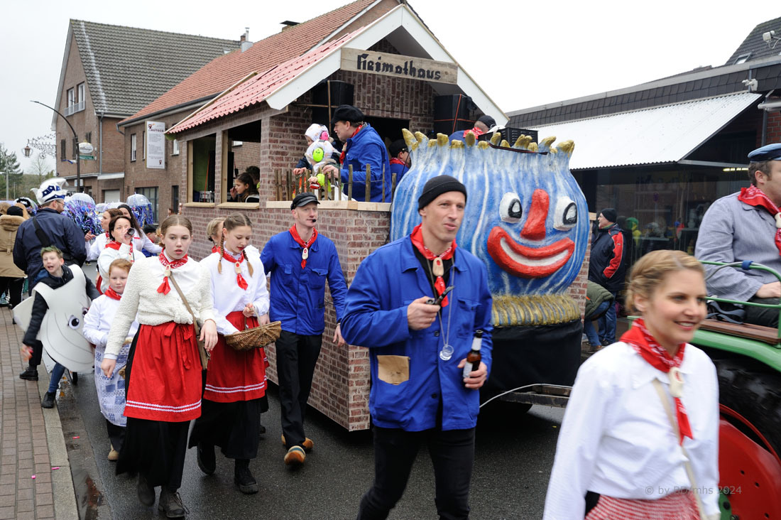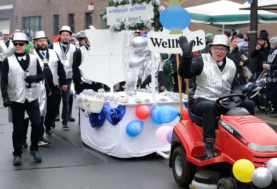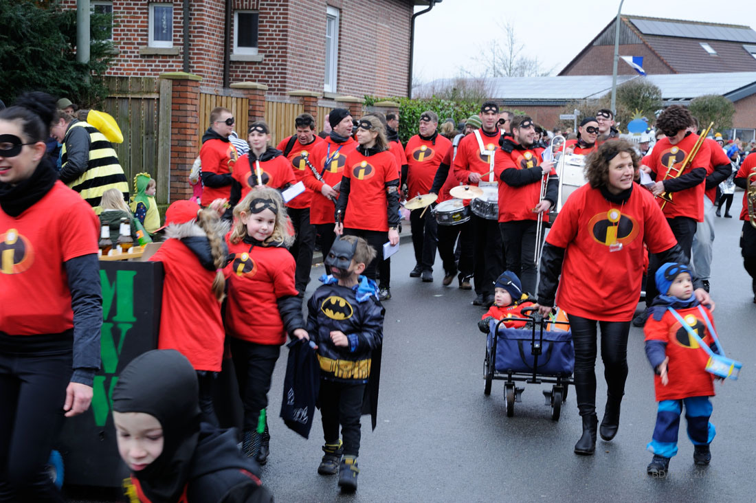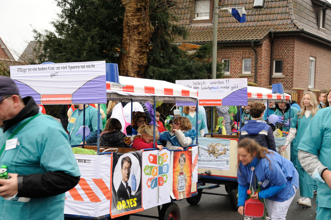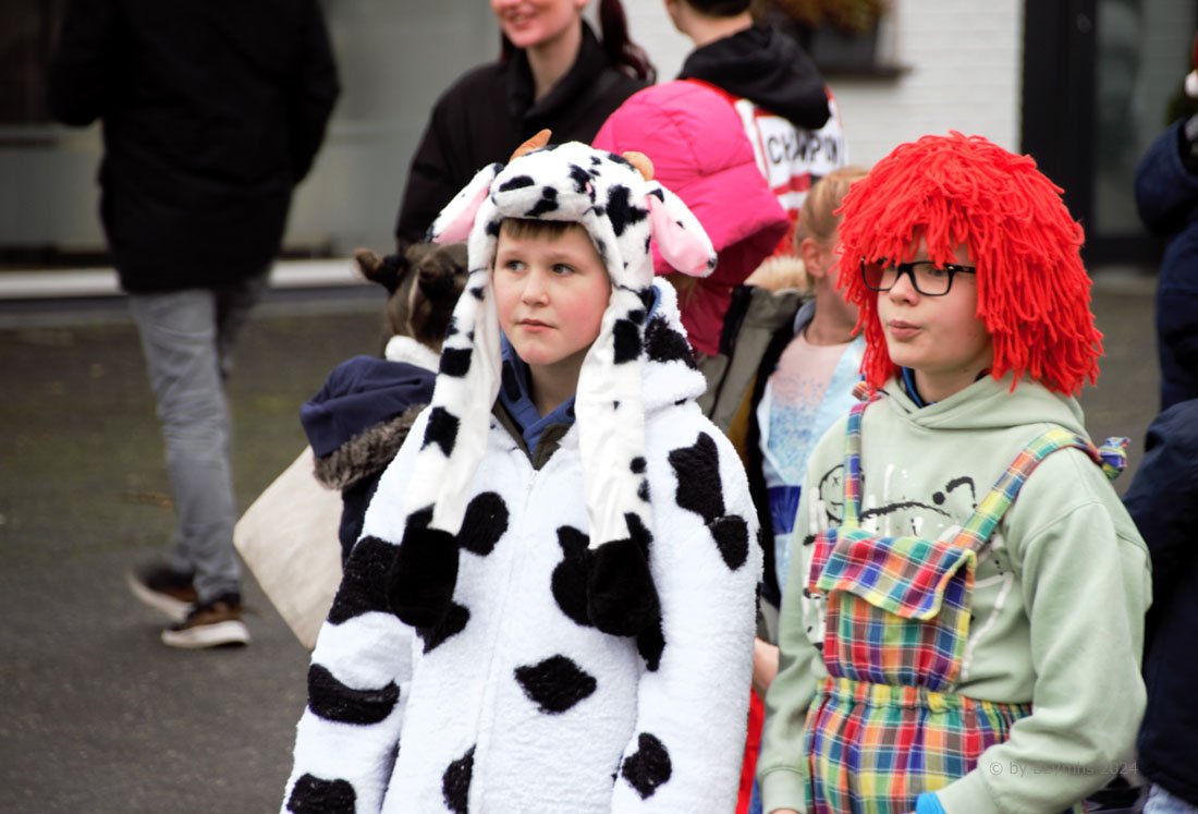 Nach Ende des Feuerwehr-Einsatzes konnte sich dann auch der Umzug des „Weseker Rosenmontagszuges“ (WRZ) in Bewegung setzen. Alle Umzugs-TeilnehmerInnen (Motivwagen, Blaskapellen, Tanz- und Fußgruppen) wurden von den feiernden Jecken in bester, karnevalistischer Manier mit lautstarken „Wäske Helau“-Rufen bejubelt. Vor allem die teilnehmenden Kinder hatten es, wie in jedem Jahr, auf die „Kamelle“ abgesehen und hatten alle Hände voll zu tun, die Vielzahl der Süßigkeiten aufzusammeln.