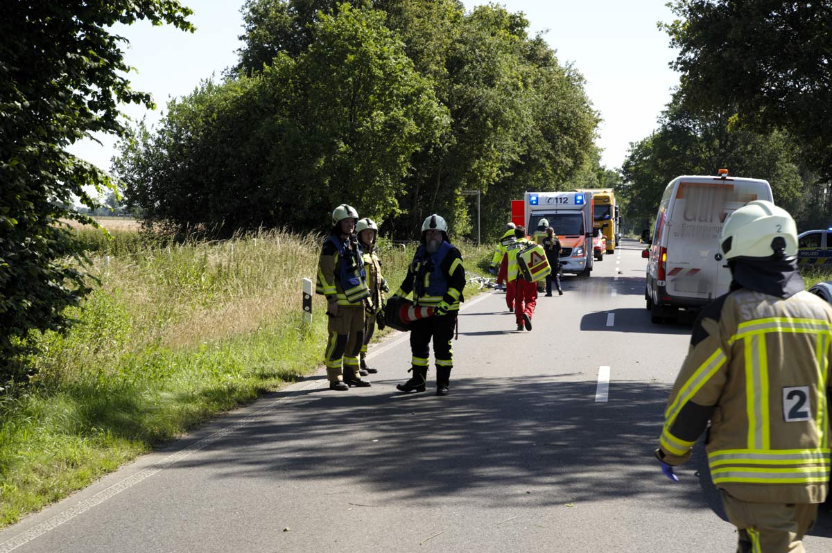 Im Einmündungsbereich (Ortslage Borkenwirthe) kam es zur Kollision der beiden Fahrzeuge, wobei sich die 17-Jährige lebensgefährliche Verletzungen zuzog. Nach medizinischer Erstversorgung am Unfallort wurde die Verletzte mit einem Rettungshubschrauber zur weiteren Behandlung in ein Klinikum geflogen. Der 44-Jährige blieb unverletzt.
