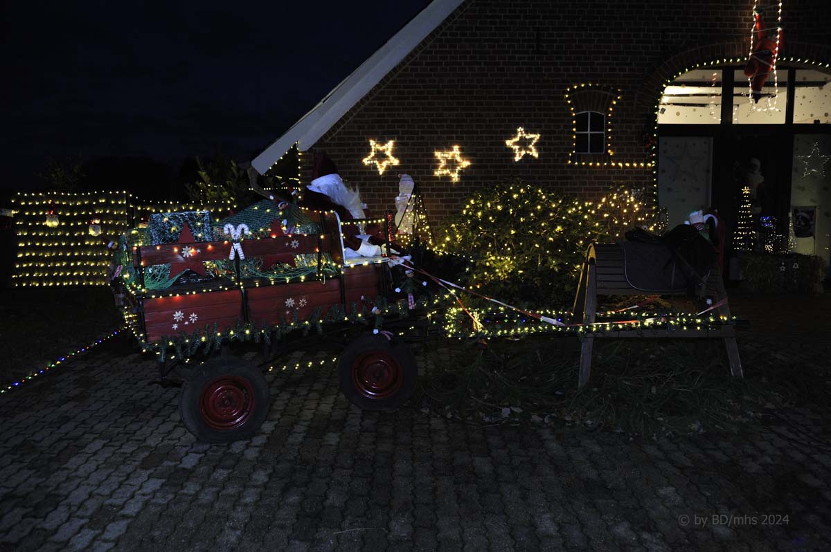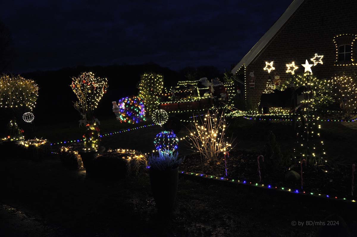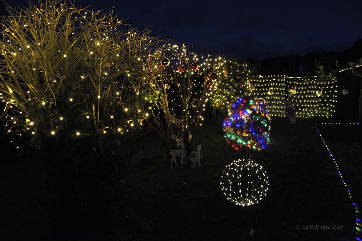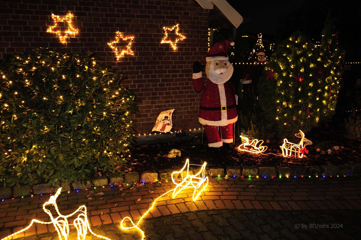 „Wie bei vielen Familien hat auch bei uns alles mit einer einzigen Lichterkette angefangen. Weil uns das so gut gefiel, kamen dann im Laufe der Zeit immer mehr dazu“, beschreibt Tanja Hüning im Gespräch mit BD-Redakteur Michael H. Schmitt den Auftakt zu ihrem mittlerweile ausgewachsenen Weihnachtsbeleuchtungs- und Dekorations-Faible. Denn mittlerweile erstrahlt nicht nur die Fassade ihres Wohngebäudes im Lichterglanz, sondern auch der gesamte, weitläufige Garten, den sie für Besucher immer gerne öffnen.