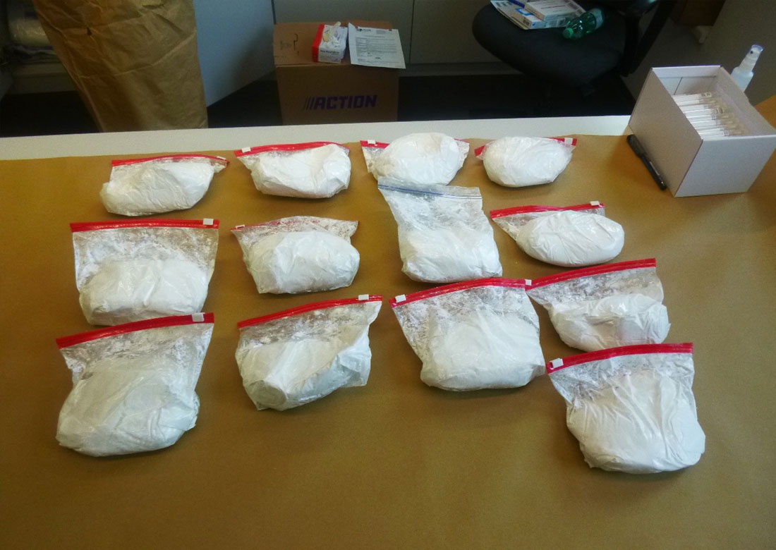 Durch umfangreiche Ermittlungen im Vorfeld war das Trio in den Fokus der Ermittler geraten. Die Beschuldigten führten bei ihrer Festnahme etwa 6,5 Kilogramm Amphetamin, 35 Gramm Cannabis, 10 Ecstasy-Tabletten sowie zwei Einhandmesser mit. Bei der anschließenden Wohnungsdurchsuchung konnten weitere ca. 4,5 Kilogramm Amphetamin, 5,5 Kilogramm Marihuana, 2,5 Kilogramm Haschisch, ca. 200 Gramm Chrystal Meth, ca. 200 Gramm MDMA, ca. 90 Gramm Kokain, ca. 2500 Euro Bargeld, eine Machete, diverse Messer, ein Druckluft-Sturmgewehr (Anscheinswaffe) und eine Gaspistole beschlagnahmt werden.