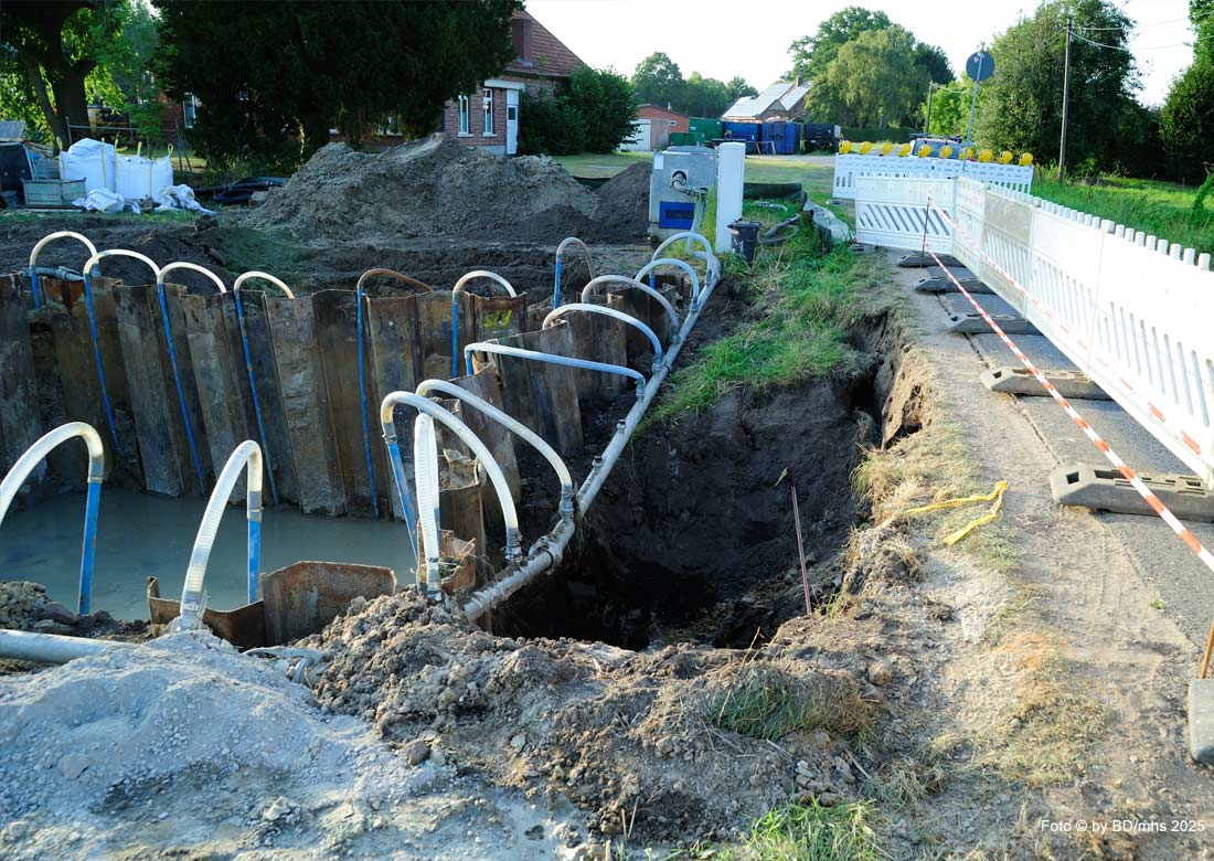 BURLO | bd | Aktuell ist der Burdarper Weg in Burlo zwischen der Rheder Straße und Printingsweg voll gesperrt. Grund für die Sperrmaßnahme sind Aushubarbeiten für den Aufbau eines Mobilfunkmastes auf einem privaten Grundstück, das neben der Fahrbahn liegt. Augenscheinlich wurde bei den Arbeiten der Rand der Fahrbahndecke in Mitleidenschaft gezogen.