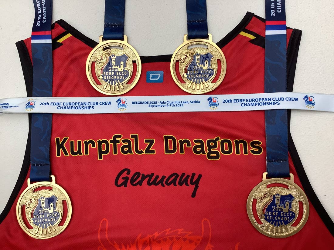 BURLO | pd/bd | Seit einigen Jahren ist der Burloer Sportler Karl-Heinz van Hall mit großem Erfolg im Drachenboot-Sport unterwegs (siehe BD-Archiv). Erst im vergangenen Jahr kehrte der Athlet als Teilnehmer bei der Club-WM im italienischen Ravenna mit einer Vielzahl Titeln und Medaillen zurück ins beschauliche Burlo. Van Hall, dessen Heimatverein der Dragonboat-Club Borken e.V. ist, startete nun bei den Club-Europameisterschaften im Drachenboot 2025 / ECCC (European Club Crew Championships) vom 04. bis 07.09.2025 in Belgrad/Serbien mit den Booten der Kurpfalz-Dragons/Mannheim Ü60 erneut durch. Bei seiner Rückkehr hatte er gleich mehrere Goldmedaillen und Europameister-Titel im Gepäck.