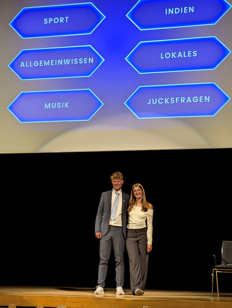 Auch ein Teilerlös aus einem aufwendig organisierten Quiz-Abend, der im Forum Mariengarden mit 120 Beteiligten stattfand, sollen in diesen Spendentopf fließen. Damit beim abendlichen Event auch alles reibungslos über die Bühne gehen konnte, mussten lange und umfangreiche Vorbereitungen durch die ausrichtenden Oberstufenschüler- und Schülerinnen vorausgehen. Schließlich war es Ziel der Planenden, dem teilnehmenden Personenkreis ein wenig den Eindruck einer größeren TV-Quiz-Show zu vermitteln – was nach Bekunden aller dann auch hervorragend geklappt hat.