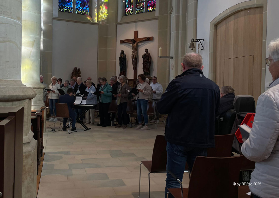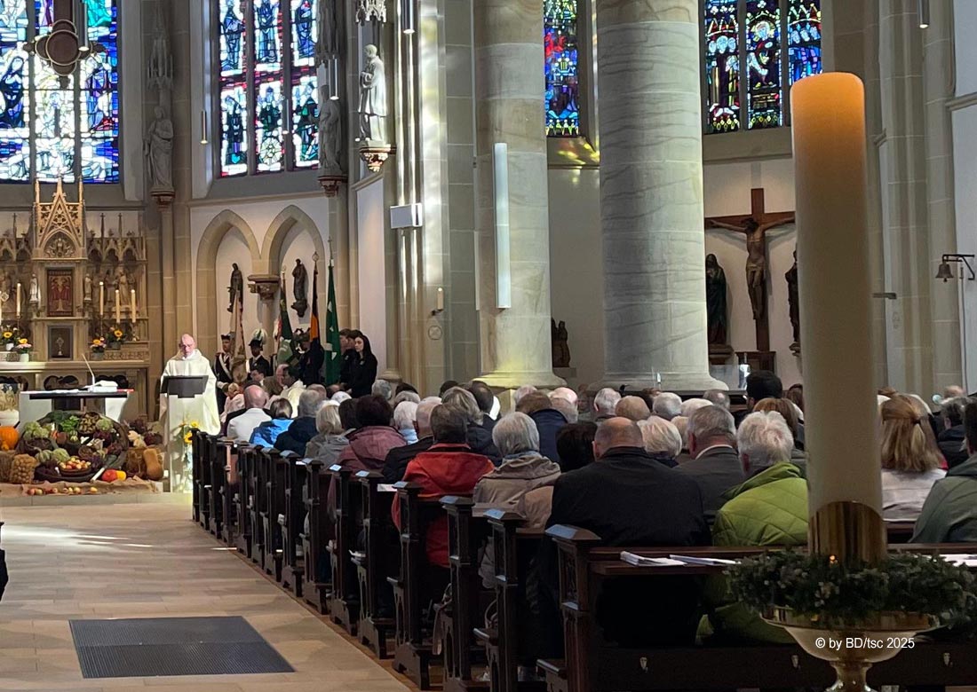 Als weitere Laudatoren kamen neben dem Pastoralteam auch die Mitglieder des Kirchenvorstands (Gottfried Mainz), der Pfarreirat (vertreten durch Sandra Bomm) und der scheidende Pfarrer selbst zu Wort. Immer wieder brandete lang anhaltender Applaus auf, wobei am Ende der Feierlichkeiten reichlich Tränen kullerten. Ein Beleg dafür, dass Pater Andreas Hohn viele Spuren in der Kirchengemeinde hinterlassen wird. Die Feierlichkeiten setzten sich im Anschluss in vielen persönlichen Gesprächen im Pfarrgemeindehaus fort. Dorthin hatte Andreas Hohn die Gemeindemitglieder eingeladen. Passend zum feierlichen Rahmen wurde der Gottesdienstes von Abordnungen der ortsansässigen Vereine und des Kirchenchores begleitet.