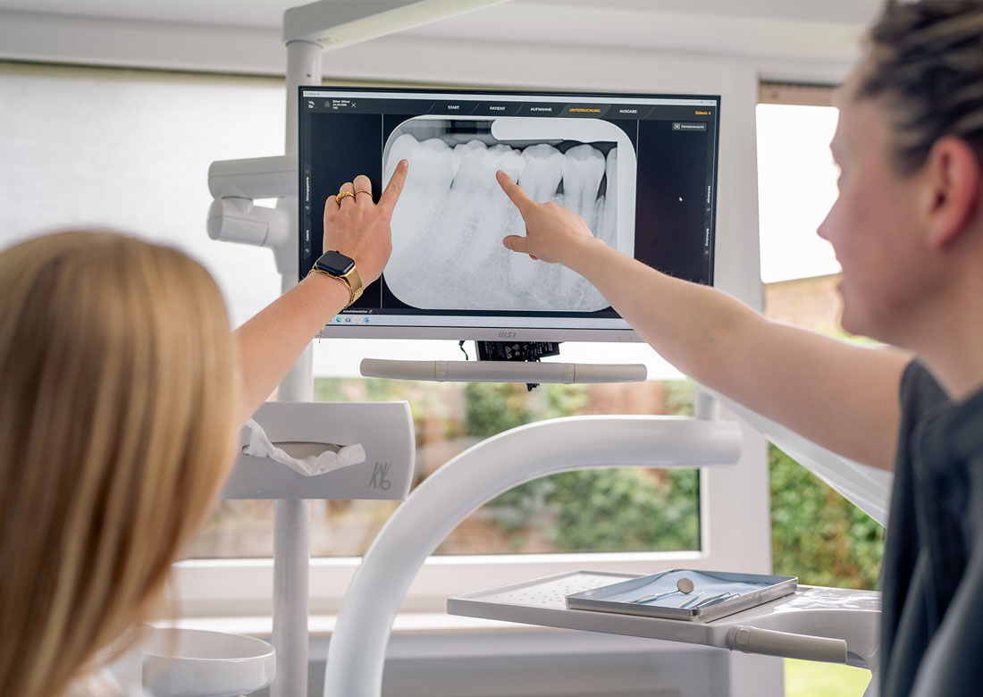 Seit 2023 betreut die engagierte Zahnärztin gemeinsam mit ihrem Team (drei zahnmedizinische Fachangestellte und einer Auszubildenden) ihre Patient:innen in ihrer Praxis in Borken-Burlo – mit fachlicher Kompetenz, einem offenen Ohr und viel Herz für moderne Zahnmedizin. Dort, wo vor einigen Jahren noch Daten mit einem Kugelschreiber in Karteikarten eingetragen und verwaltet wurden, befindet sich heute eine weitestgehend digitalisierte Praxis- und Patientenverwaltung.