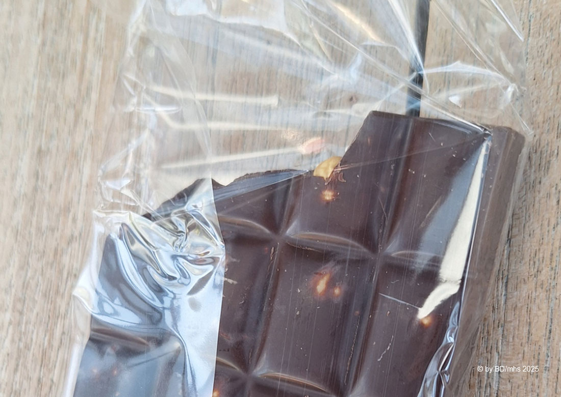 Wo einst 100 Gramm des süßen Inhalts wohnten, waren es plötzlich einige Gramm weniger. Jemand hatte offenbar einen Teil der Schokolade entnommen – oder gar abgebissen – und den Rest wieder fein säuberlich ins Regal zurückgelegt.