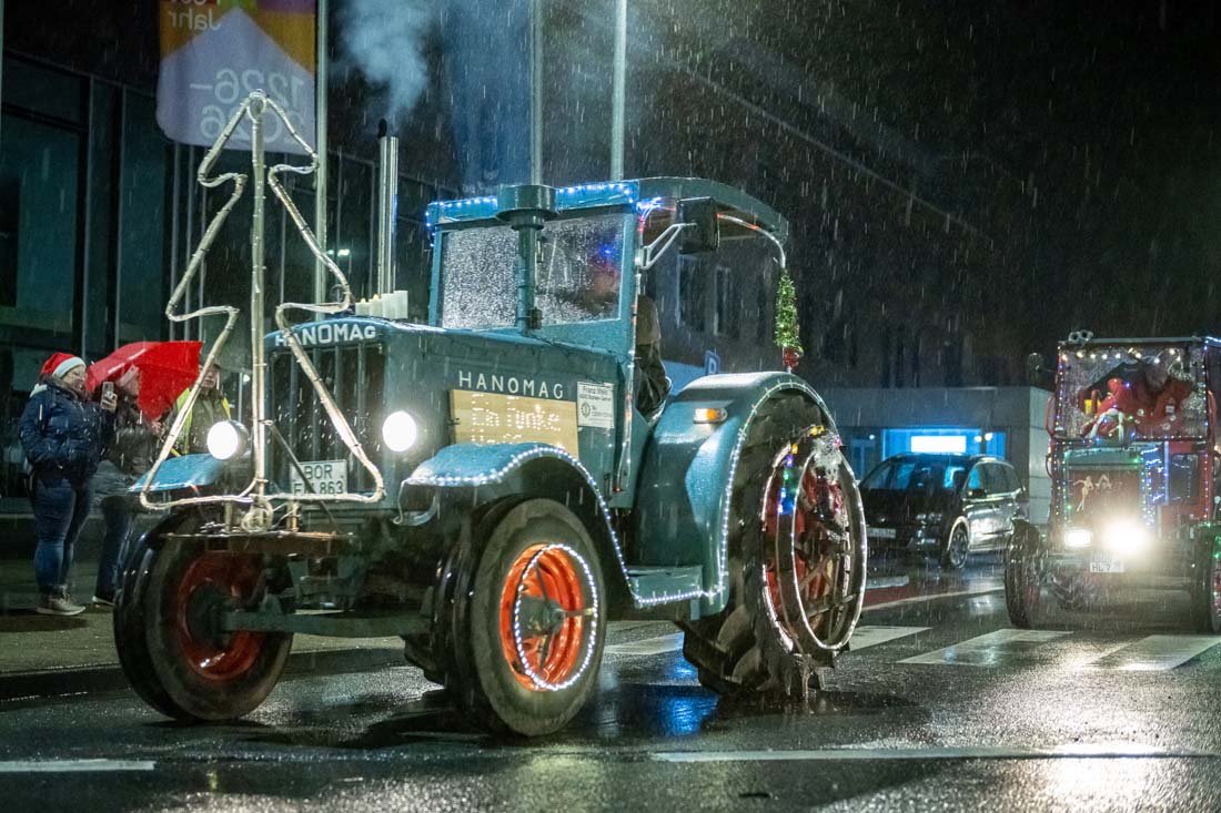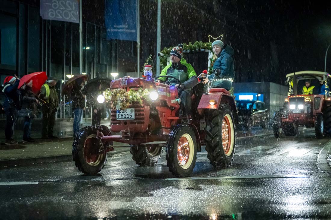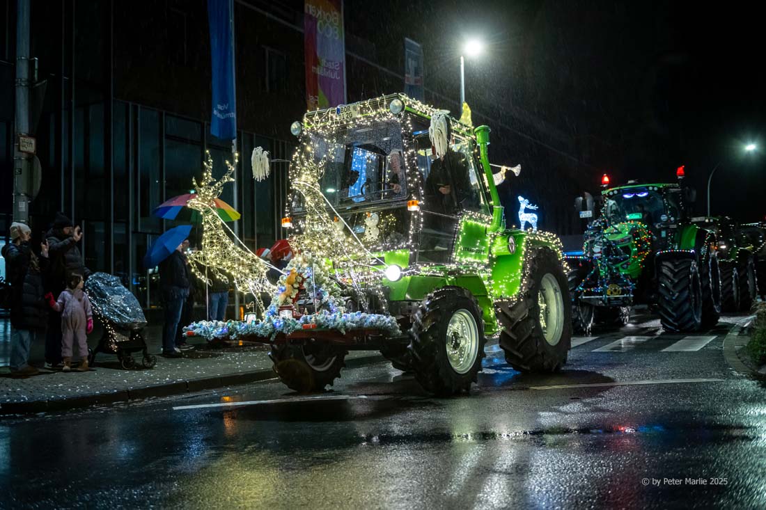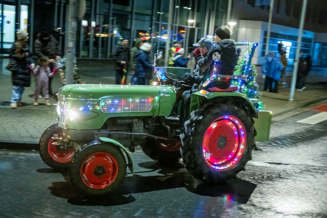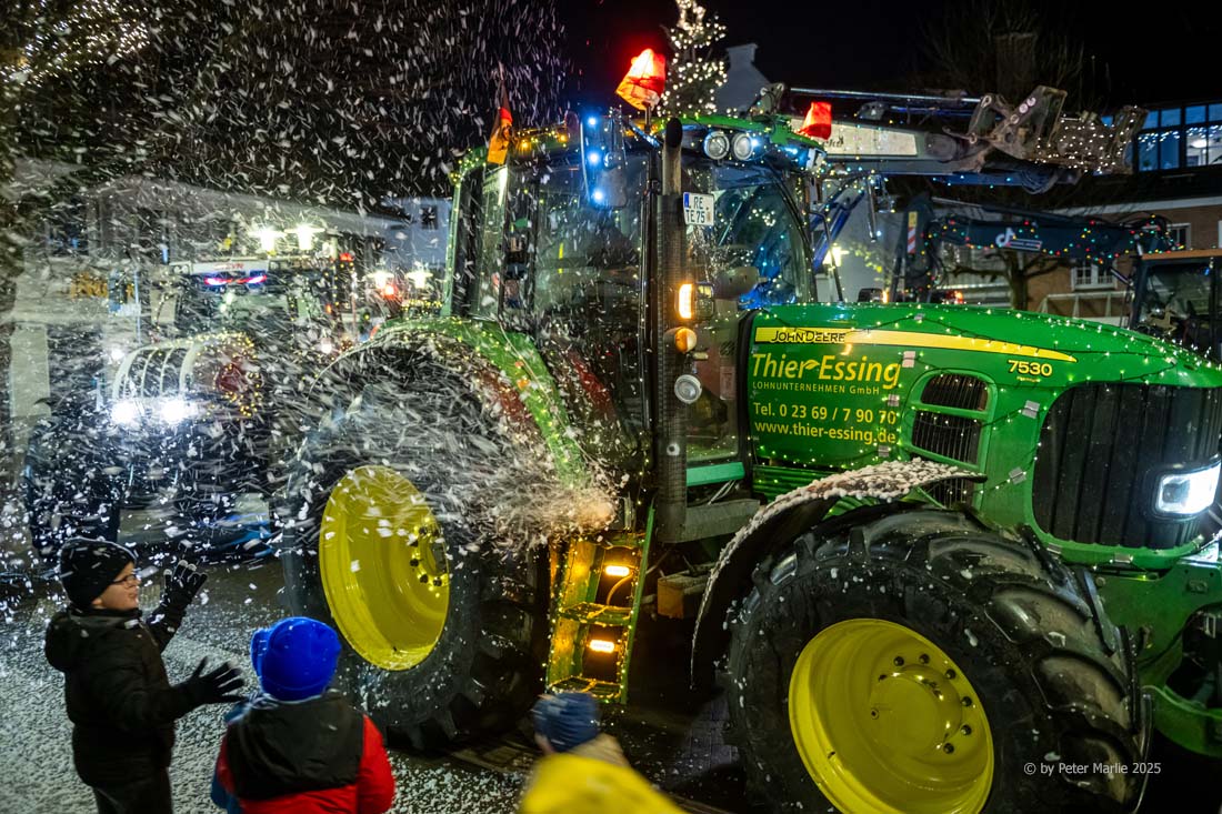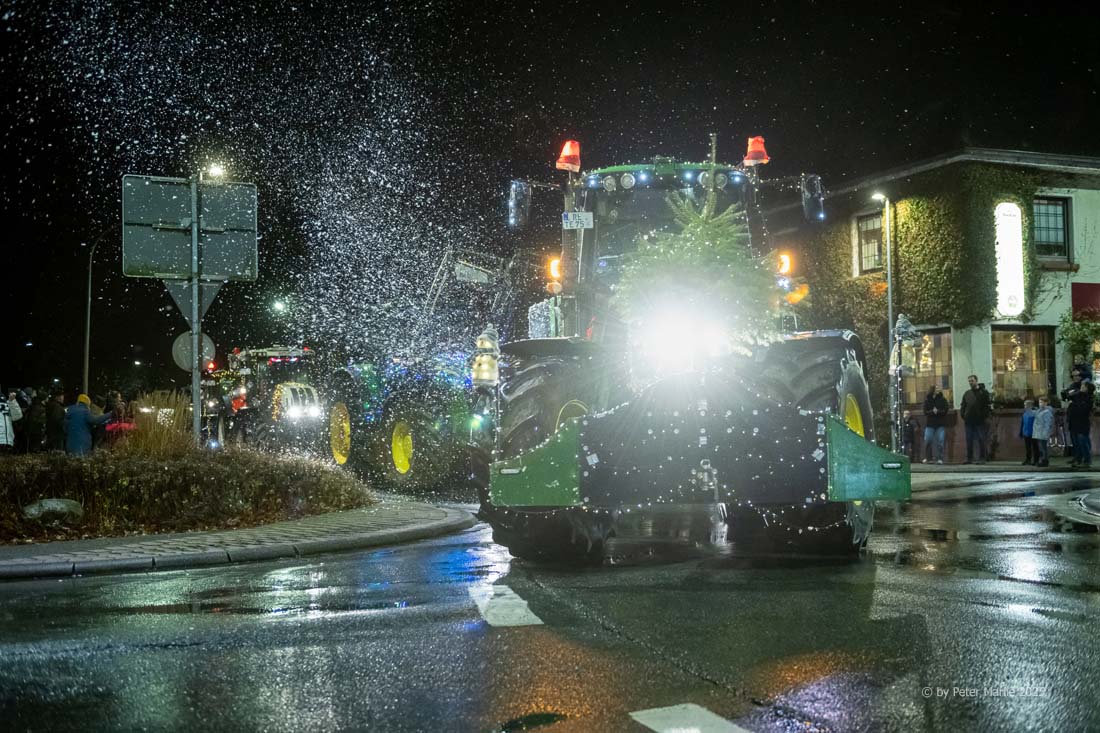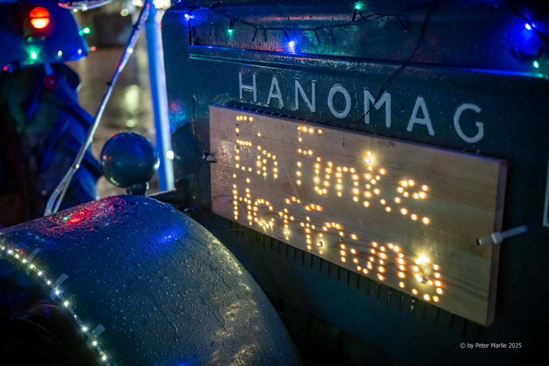Wie in jedem der vorangegangenen Jahre säumten neben professionellen Fotografen und Pressevertretern auch am Samstagabend wieder unzählige Hobby-Fotografen und vor allem Kinder mit leuchtenden Augen die Strecke. Alle gemeinsam beobachteten die mit Lichterketten und weihnachtlichem Schmuck herausgeputzten Ackerschlepper, deren Fahrer und Fahrerinnen offenbar genauso viel Spaß während des kilometerlangen Korsos hatten wie die Zuschauenden. Und das Motto des Aufzugs „Ein Funken Hoffnung“ werden vor allem die Kinder in Erinnerung behalten – denn ein Funken Hoffnung, dass es auch im kommenden Jahr wieder dieses außergewöhnliche Event geben wird, bleibt schließlich immer.