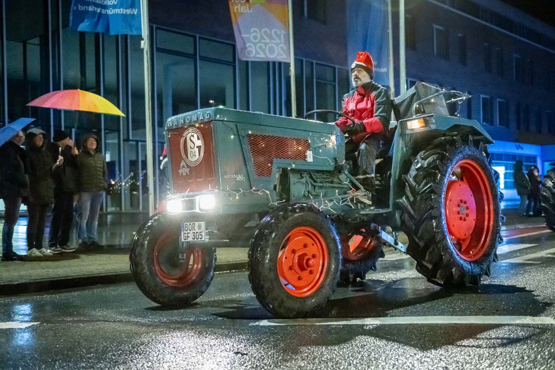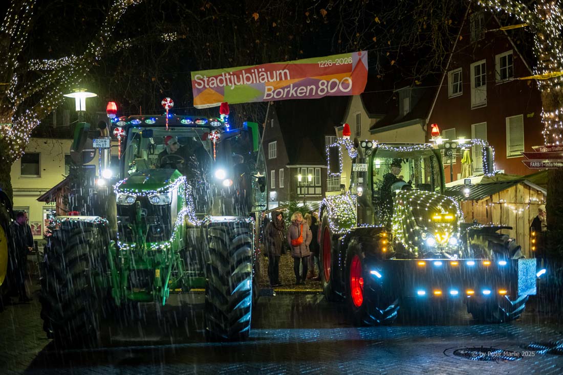 BORKEN | bd | Am Samstagabend erfreuten die Borkener Landwirte wie bereits in den Vorjahren viele hundert Menschen bei einem Trecker-Korso durch Gemen und Borken. Das ursprünglich während der Corona-Pandemie ins Leben gerufene Event hat sich zwischenzeitlich etabliert und lockt alljährlich viele hundert Menschen an die von den Organisatoren zuvor bekannt gegebene Aufzugstrecke. Diese führte vom Parkplatz der Jodocus-Nünning-Gesamtschule durch Gemen bis auf den Borkener Marktplatz.