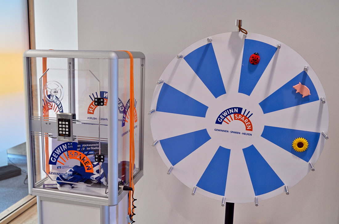 „Und nun rechtzeitig vor dem Weihnachtsfest haben unsere Kundinnen und Kunden noch eine weitere Gewinnchance. Jeder Losinhaber, jede Losinhaberin kann in unserer Filiale an einem bereitgestellten Tresor sein Glück versuchen und mit Eingabe einer vierstelligen Zahlenkombination und ein wenig Glück 2 Eintrittskarten für eines der nächsten Spiele des Fußball-Zweitligisten FC Schalke 04 gewinnen. Ein blau-weißer Schal des Traditionsvereins liegt ebenfalls im Gewinntresor bereit“, erklärt Filialleiter Seyrek.