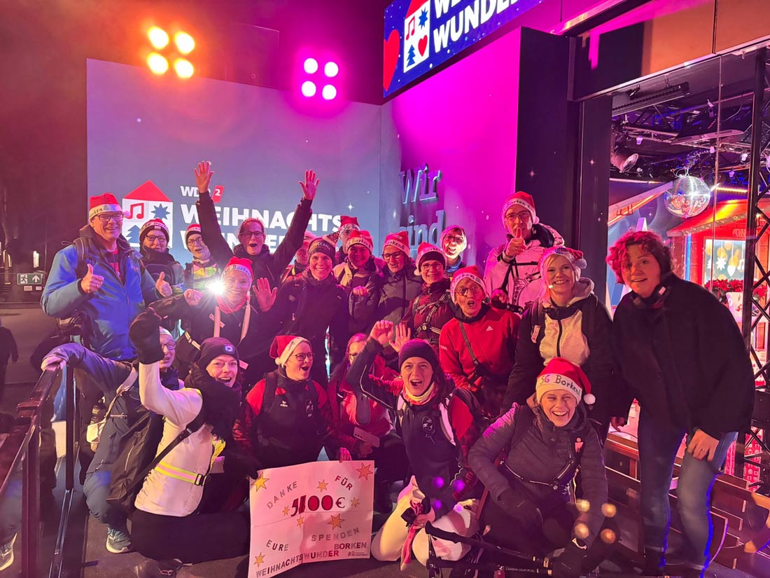 BORKEN | bd | Die Idee zu einer sportlich herausragenden und sicher auch anstrengenden Aktion hatten Anja Callegari und Pia Stenkamp, beide Mitglieder der „TriBikeRun“-Gruppe der SG Borken, berichtet die Burloer Läuferin Birgit Hoppmann auf Nachfrage der BD-Redaktion. Seit etwa vier Wochen hatten die Sportler/innen der Gruppe in den sozialen Medien zum Spenden für den guten Zweck aufgerufen und ihren Plan am dritten Adventssonntag in die Tat umgesetzt. Vor ihnen lag an diesem Morgen aber nicht nur ein langer Fußmarsch, sondern vor allem die Vorfreude darüber, am Ziel einen Spendenscheck überreichen zu können, auf dem ein vierstelliger Betrag eingesetzt war.