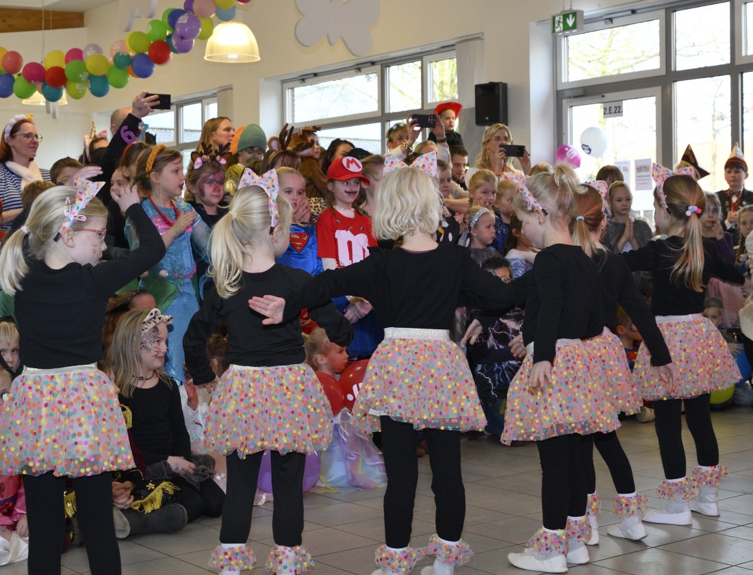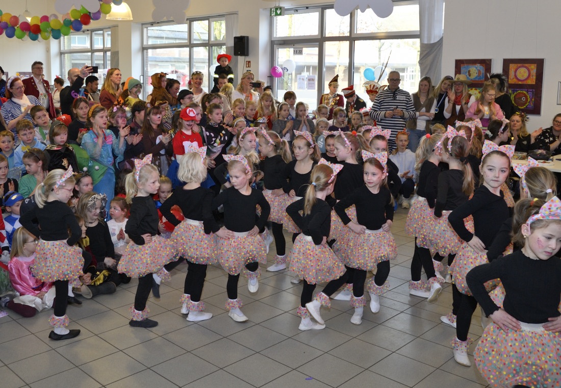 WESEKE | bd | Rund 130 bunt und phantasievoll kostümierte Teilnehmer*innen hatten sich am Samstagnachmittag in der Aula der Weseker Maria Sibylla Merian Realschule eingefunden, um auf Einladung des Weseker Rosenmontagszuges eine turbulente und mit vielen Programmpunkten gespickte Karnevalsparty zu feiern. Doch bei dieser Party ging es weniger um das Vergnügen der erwachsenen Begleitpersonen, sondern einzig um die rund 70 Kinder, die mit großer Begeisterung einen ausgelassenen, närrischen Nachmittag verbrachten.