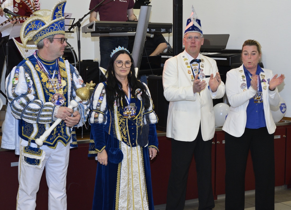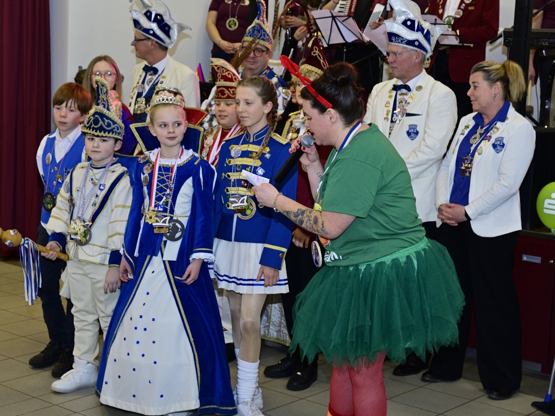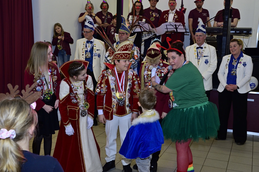 Wie bereits in den Vorjahren erhielten die kleinen Narren und Närrinnen auch Besuch aus den benachbarten Karnevalsvereinen. Mit dabei in diesem Jahr Vertretungen aus Gemen (Kinderprinzenpaar Fritz I. und Amy I.), dem Kinderprinzenpaar Hannes I. und Maja I. aus Raesfeld sowie dem Südlohner Kinderprinzenpaar Henry I. und Lisa I. Alle kamen in Begleitung des jeweiligen Hofstaats der Erwachsenenabteilungen der Karnevalsvereine. Klar, dass auch das amtierende Prinzenpaar des WRZ, Andreas I. und Moni I., an diesem Nachmittag vorbeischauten. Sie präsentierten dann auch das neue Weseker Kinderprinzenpaar Prinz Adrian Wessels und Prinzessin Mia Ostendorf, die alle mit einem herzlichen Applaus begrüßt wurden.