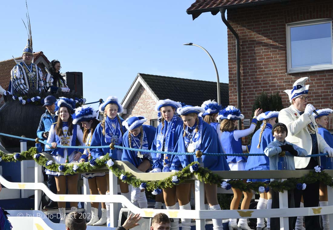 WESEKE | bd | Der Höhepunkt der Karnevalssession fand für die Weseker am heutigen Samstag in der Sippelgemeinde statt. Mit dem traditionellen Umzug des Weseker Rosenmontagszuges (WRZ) geht die Amtszeit des Prinzenpaares Andreas I und Moni I rasant dem Ende entgegen. Pünktlich um 11:11 Uhr starteten die Motivwagen und Personengruppen bei sonnigem Wetter an der Borkenwirther Straße und zogen anschließend unter großem Jubel der Zuschauenden durch den Weseker Ortskern.