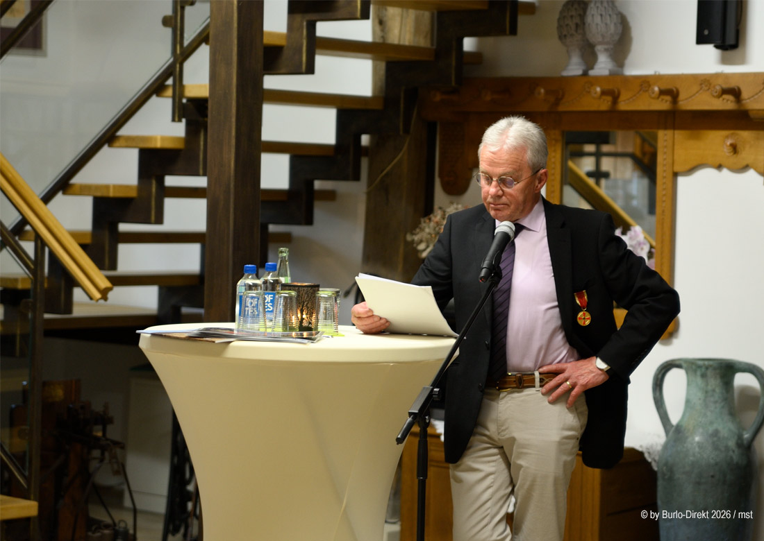 „Ich freue mich, dass gerade Ihnen diese Ehrung zuteil wird, weil diese zum einen ein besonderer Dank für Ihr Engagement ist – ein Engagement, das weit über ein pflichtmäßiges Bürgerverhalten hinausgeht. Zum anderen halte ich es für außerordentlich wichtig, dass wir alle mit Ihrer Auszeichnung darauf hingewiesen werden, wie entscheidend das Engagement einzelner Bürgerinnen und Bürger für den Natur- und Landschaftsschutz ist“, hob Zwicker stellvertretend für den Bundespräsidenten in seiner Laudatio hervor und übermittelte gleichzeitig auch die Grüße von Ministerpräsident Hendrik Wüst und des Regierungspräsidenten von Münster, Herrn Andreas Bothe.