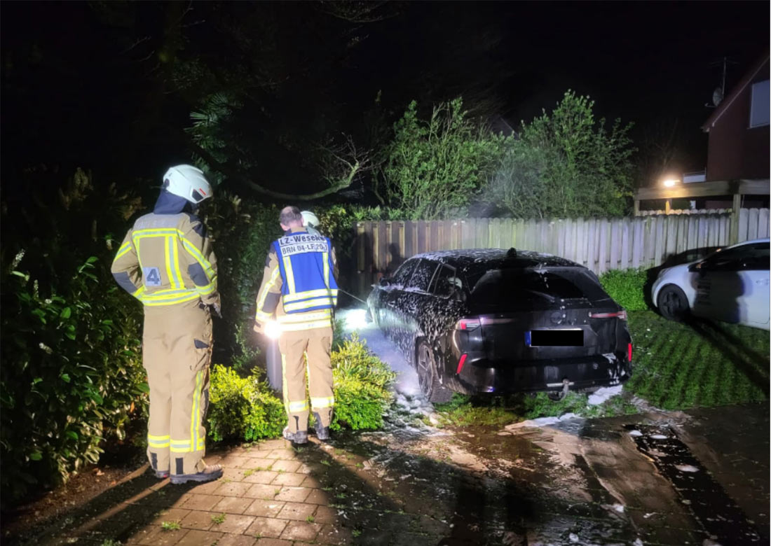 WESEKE | pd/bd | In den frühen Morgenstunden des heutigen Sonntags waren der Löschzug Weseke sowie Wehrleute der hauptamtlichen Wache in Borken im Benningsweg in Weseke eingesetzt. Dort war es kurz nach vier Uhr aus bislang ungeklärter Ursache zum Brand eines geparkten PKW gekommen. Der Brand wurde unter Einsatz von Schaum-Löschmitteln gelöscht – ein Übergreifen des Brandes auf andere Fahrzeuge wurde verhindert.